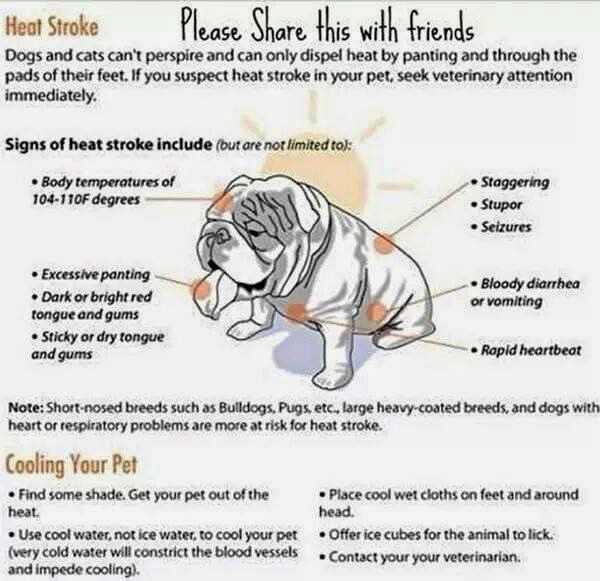 These pets, along with the elderly, the overweight, and those with heart or lung diseases, should be kept cool in air-conditioned rooms as much as possible. If your pet shows signs of heat distress, cool him down slowly with a cool rag. Do not submerge him in water. Take your dog immediately to a veterinarian for follow up care.